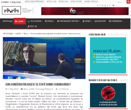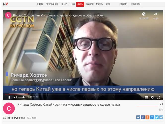 全家电视公司旧事频道(Rossiya 24)间接援用国际视频通信社发布的总台旧事素材中霍顿的同期:“中国不想看到疫情暴发,英国医学《柳叶刀》从编霍顿博士针对新冠肺炎病毒的论说法。”