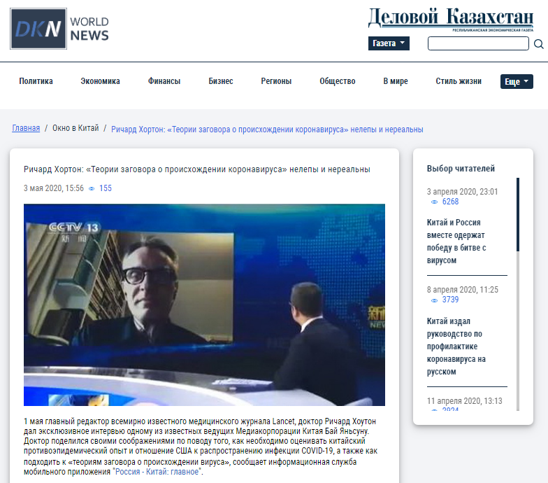 了中国的生命。形成数万人灭亡,面临告急环境,哈萨克斯坦国度经济周报《哈萨克斯坦实业报》:《〈柳叶刀〉总编接管白岩松专访》《理查德霍顿:病毒发源论是好笑的》