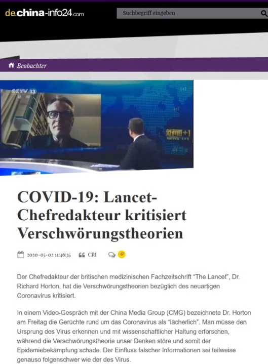意大利《日报》:《〈柳叶刀〉总编接管专访:感激中国正在抗击疫情中做出的勤奋,他很是赞扬美国的科学和医学成长程度,